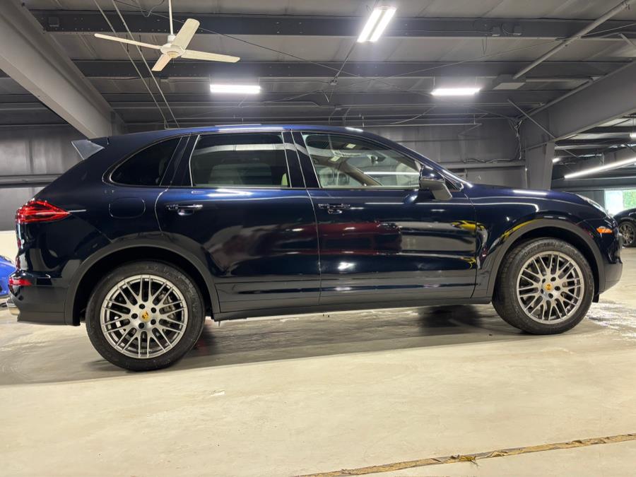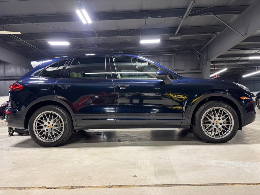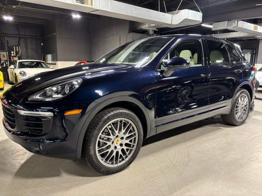 Clean one owner Cayenne S. This low mileage Porsche was sourced from California as a trade in. Finished in Moonlight Blue Metallic over two tone Saddle Brown and Cream Leather with deviated stitching. Nicely optioned including Premium Package, Porsche Entry & Drive, Seat Belts in Saddle Brown, 20” RS Spyder Design Wheels, Bose Premium Sound System w Bluetooth Audio, Lane Change Assist, Heated Seats, Back up Camera, Panoramic Moonroof, Dark Walnut Interior Package incl. Gear Selector as well as Exterior Package in High Gloss Black. Just fully serviced at our facility and complete with all accessories, books and keys. Contact us for more information.
