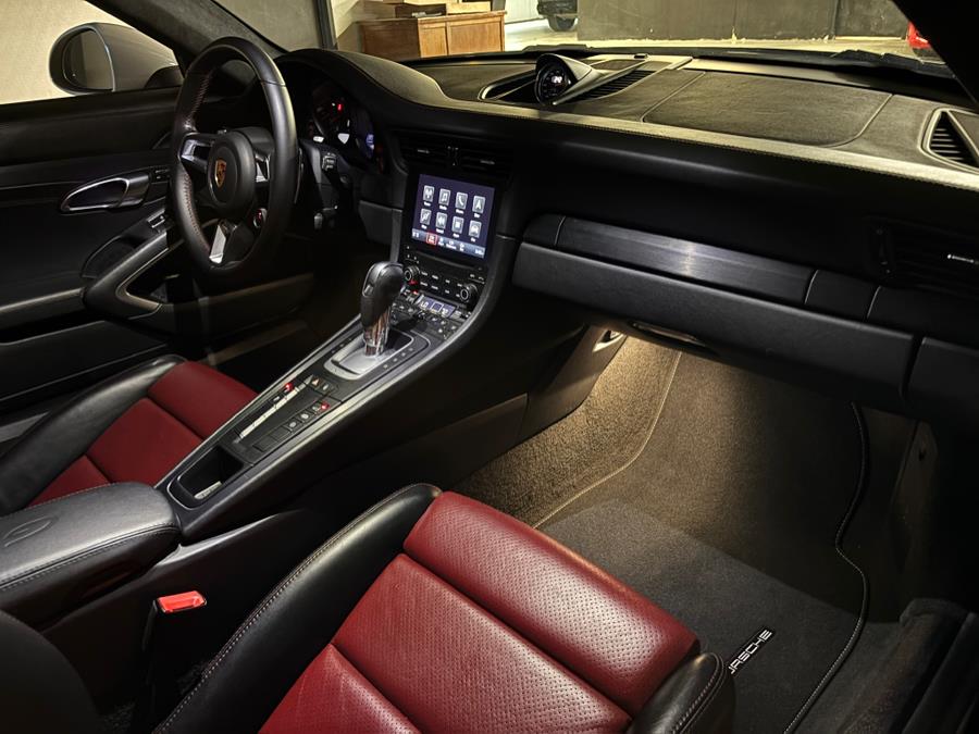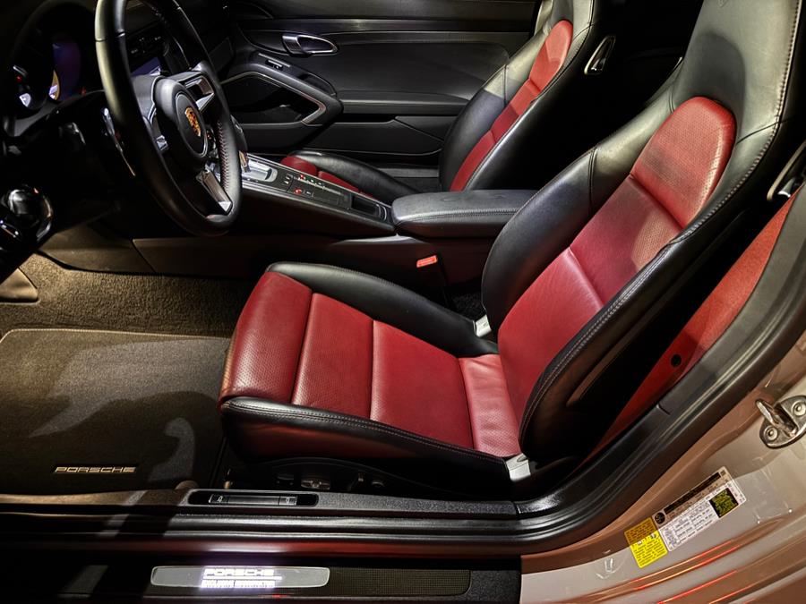 Immaculate low mileage one owner 991.2 GTS. With over 450 Horse Power and one of only 445 cars produced in 2018, this example is finished in “Chalk” with an extensive build including Illuminated Personalized Carbon Fiber Door Sill Guards, Leather Wrapped Steering Wheel w Deviated Stitching in Bordeaux Red, Black Brushed Aluminum, Two Tone Leather (Black and Bordeaux Red, Air Vents finished in Leather, Fuse Box Covers in Leather, Contrast Stitching Interior Package, Storage Compartment in Leather w GTS Logo, Sport Tailpipes in Black, PDLS, GT Steering Wheel, 20” Turbo Center Lock Wheels in Satin Black, Bose 555 watt Premium Sound Package w Bluetooth Audio, 14 Way Sport Seats w Memory Package, Porsche Entry and Drive, Heated Seats, Sport Chrono, Rear Axel Steering and much more. Just fully serviced at our facility. Complete w all accessories and both master keys.