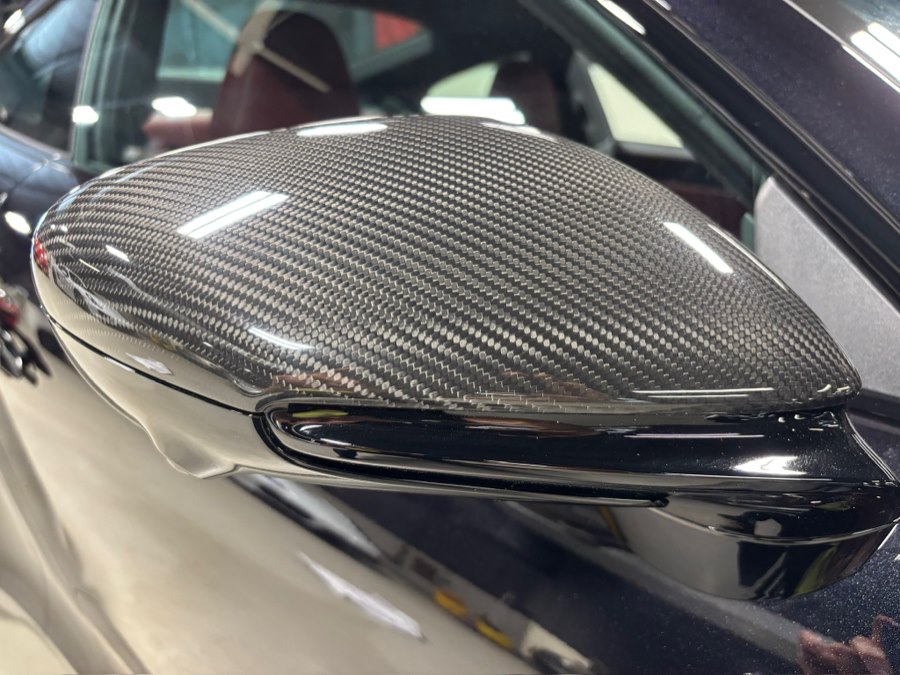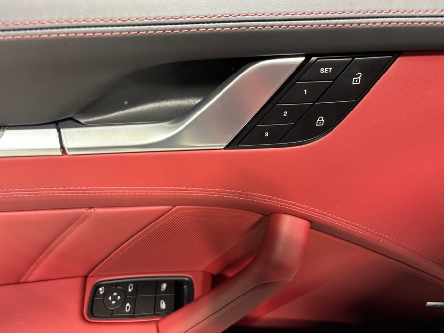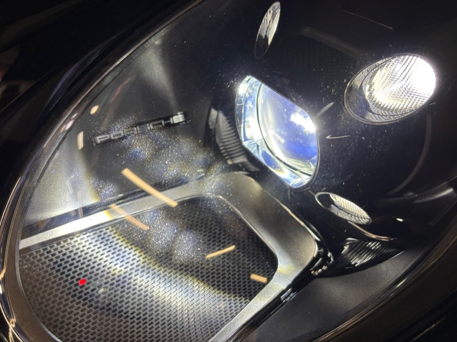 The car sits on 20” front / 21” rear RS Spyder Design wheels with colored Porsche crest center caps, while exterior details are enhanced by carbon fiber mirror housings, high-gloss black window trim, and rear decklid grille inlays finished in exterior color. A power glass sunroof adds light and versatility.