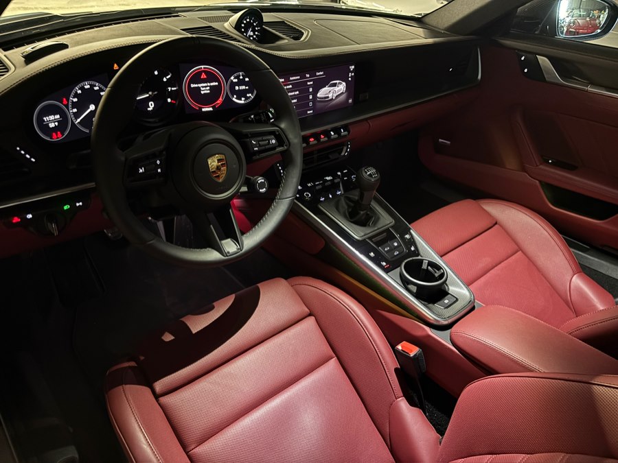 Offered is an exceptional one owner 2024 Porsche 911 Carrera S finished in Jet Black Metallic over a stunning Bordeaux Red / Black two-tone leather interior. This enthusiast-spec example is equipped with the 7-speed manual transmission paired with Sport Chrono, delivering a pure and engaging driving experience that’s becoming increasingly rare.